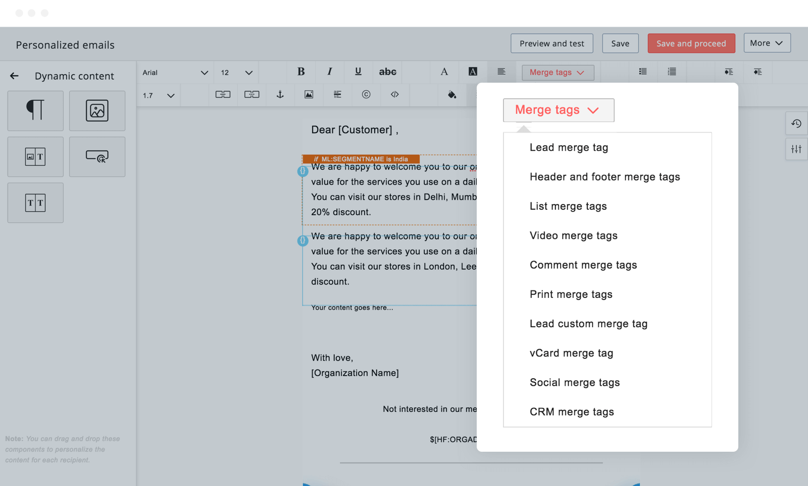 结合线索标签和动态内容,帮助您为线索制定个性化的邮件营销流程。