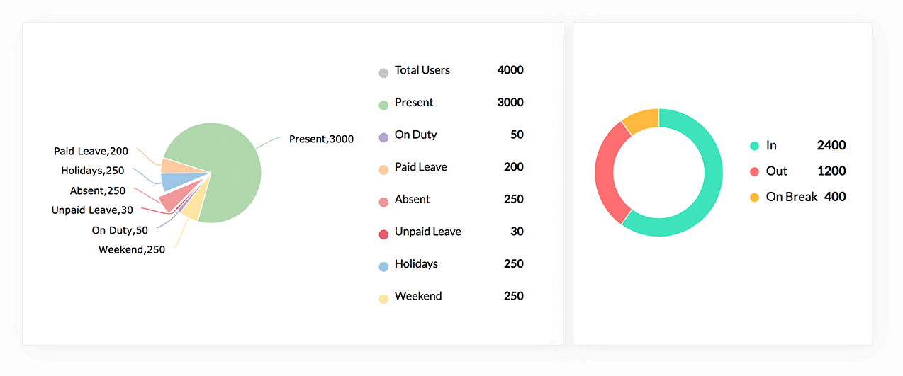 借助诸如迟到/早退数据、计划于工作时间报告等来生成报表,以增强您的见解和决策,从而帮助您了解组织的的出勤情况、薪资计算和时间表安排。