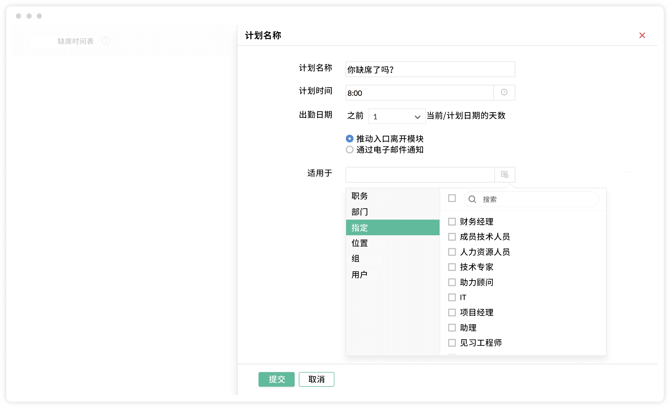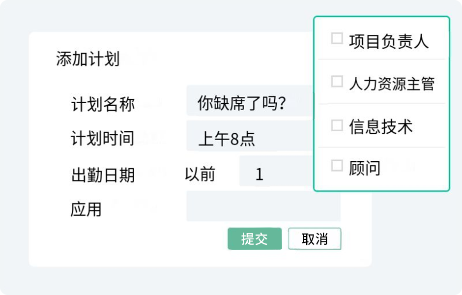检查出勤和调休可能很艰巨,特别是如果您是一个大型组织。我们的缺勤安排程序可以减轻您的负担,让您轻松将缺勤转为休息日。与其他设置一样,这也是可自定义的,并且可以在选定的时间触发。