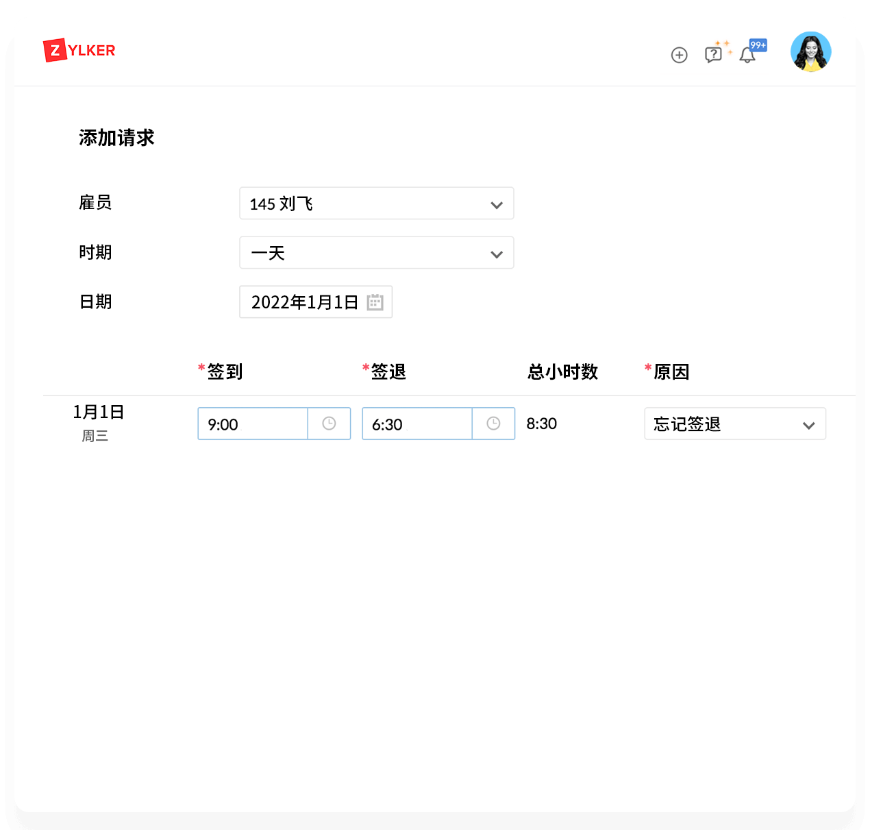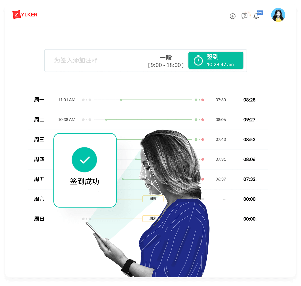 Zoho People 的员工考勤管理系统让您告别繁琐的Excel电子表格,以简单的方式管理高效的员工考勤。 通过基于云的考勤管理软件,生成富有洞察力的考勤管理报告,标准化考勤,无论在现场或者任何地方都可以考勤签到。