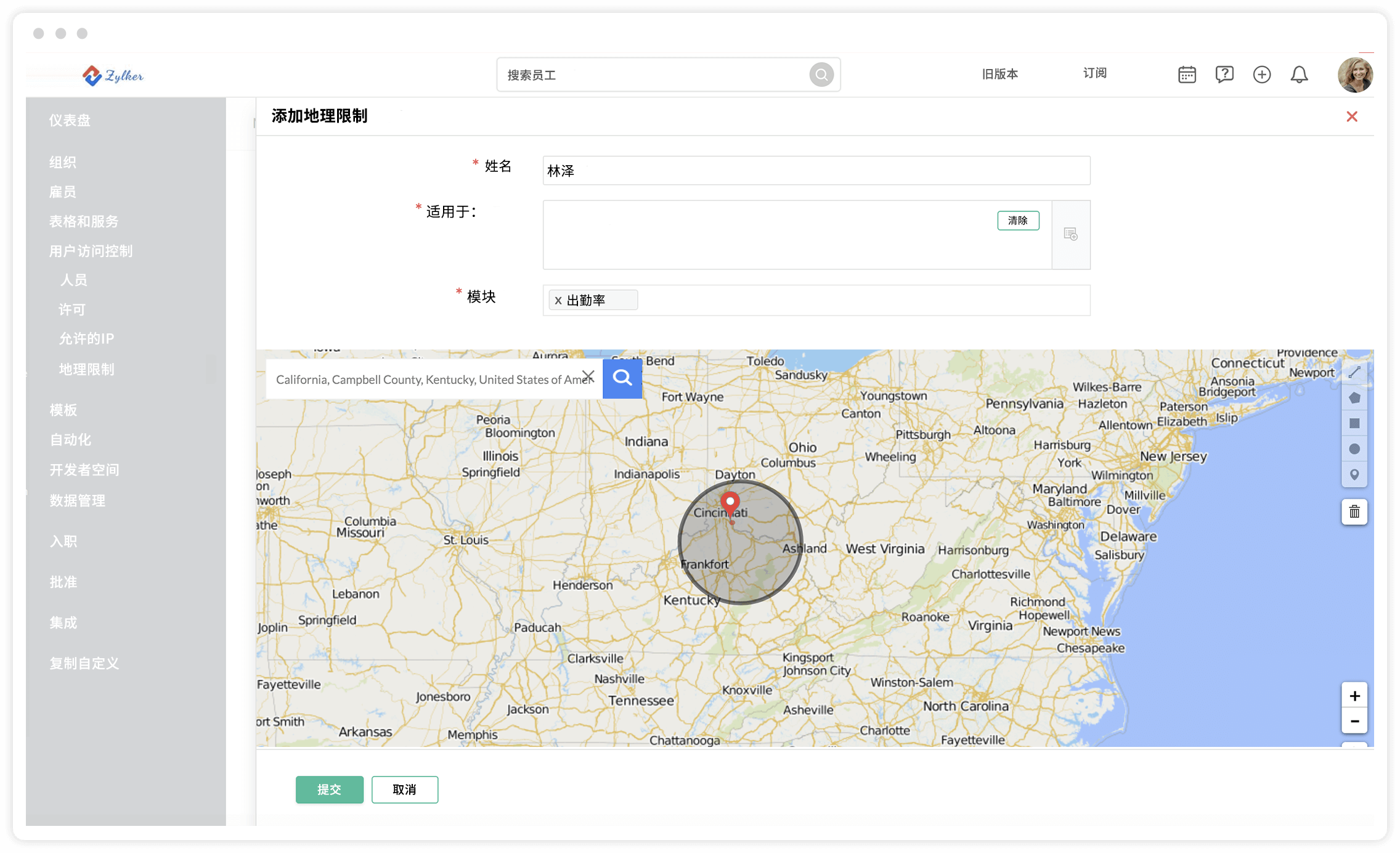 支持员工通过 Web 或移动App在任何地方进行考勤签到,考勤模块中提供地域跟踪,员工可以从不同位置签到或者签退。IP和地理限制让过程安全可靠。Zoho People还允许团队在任何授权位置或设备访问工作,从而保持高效的工作。