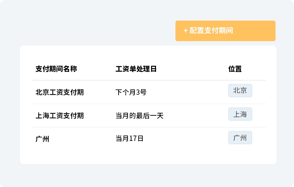 通过 Zoho People,你可以在不同的区域和地点配置发薪周期、定义发薪周期并选择工资单处理日期。Zoho People中记录的工作时间还有助于计算员工的工资。