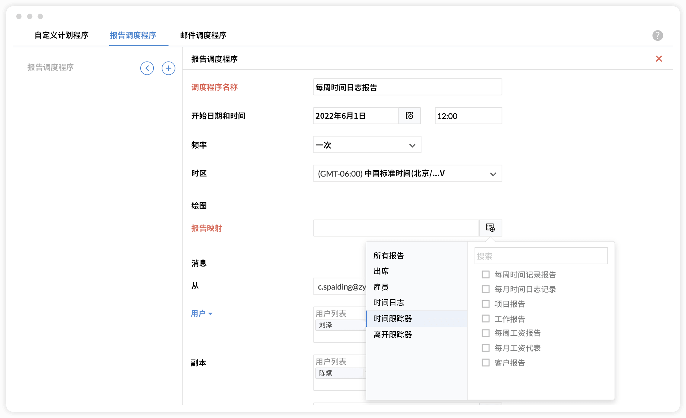 使用时间表发送定期电子邮件和报表。Zoho People 允许您创建报表、电子邮件和自定义时间表,这样您可以确保在正确的时间向正确的人员发送正确的信息。