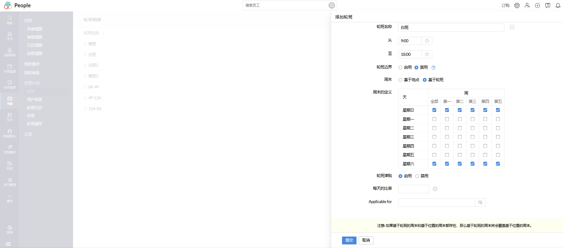 获取整个机构的考勤时间表,将员工添加到标准轮班时间,或者您创建的轮班时间。