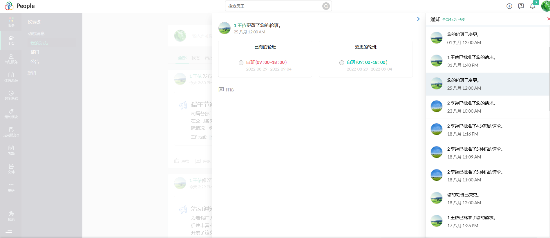 从轮班到时间表变更及其他事项,通知中心可帮助员工随时了解情况。