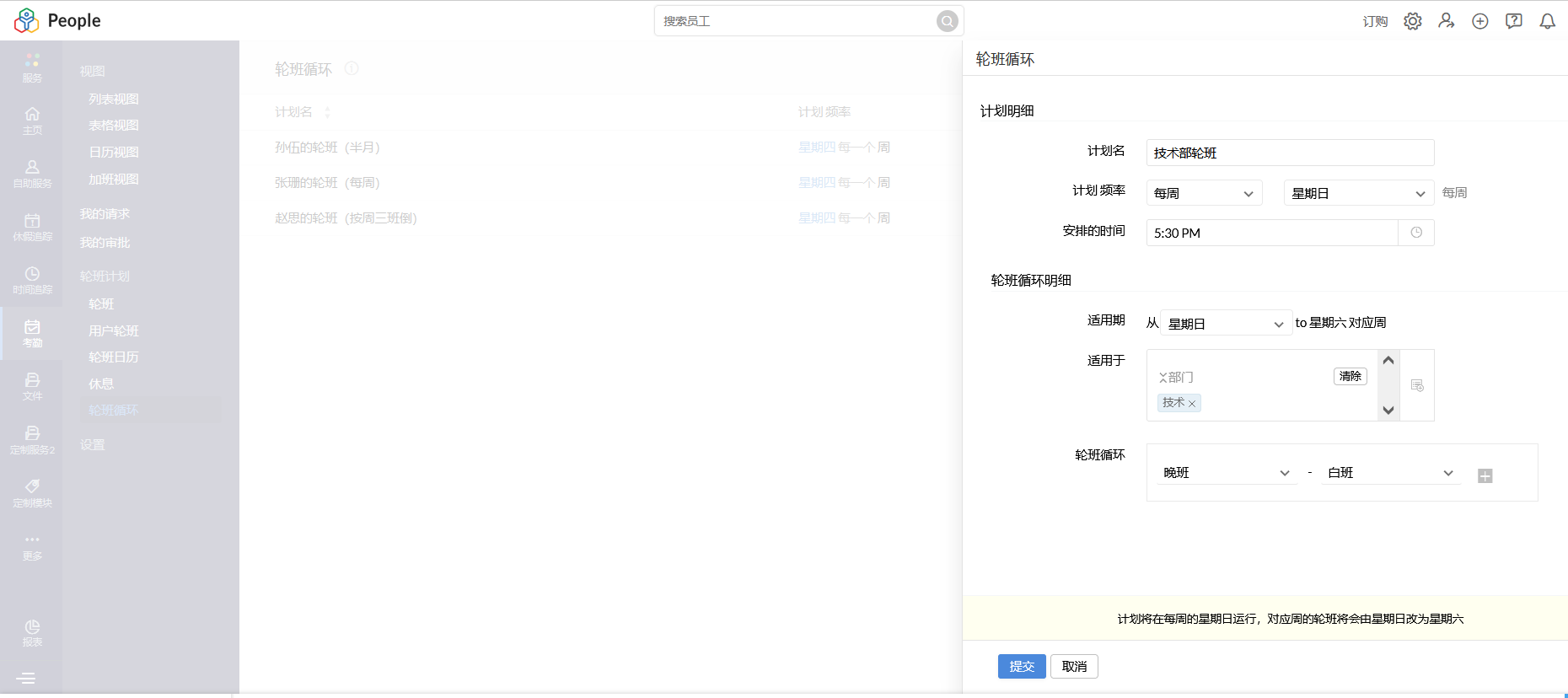 通过自动化的时间表定期轮换班次,设置将根据角色和部门自动调整员工时间表的系统,Zoho People 会提前通知人员作出的变更。
