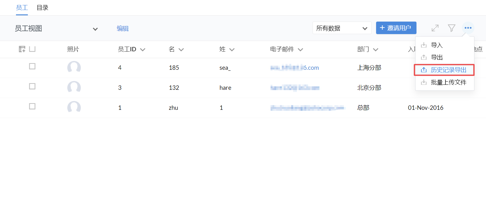 - 从您的主页,转至相应的列表视图。例如,如果您为员工表单中的一个字段启用了审计历史,那么请从 主页 >机构 > 员工访问员工列表视图