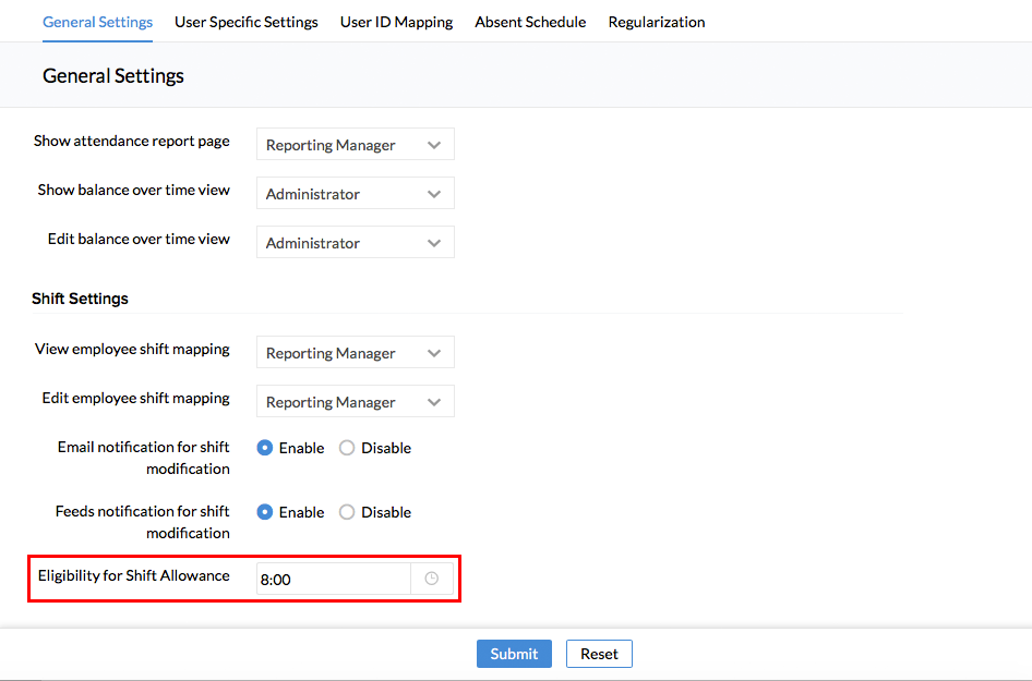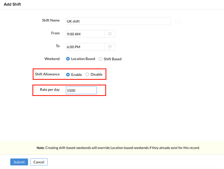 如果您的机构运作多个轮班,那么,您可以为不同轮班添加不同的费率。这种轮班津贴不同于给予员工的薪酬。添加轮班津贴后,您可以为员工填写每天的费率并导出数据。然后可以将此导出的数据添加到员工的工资中。