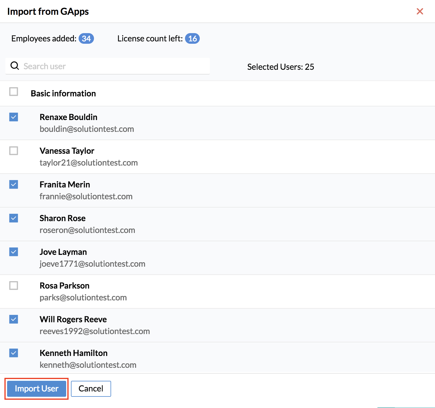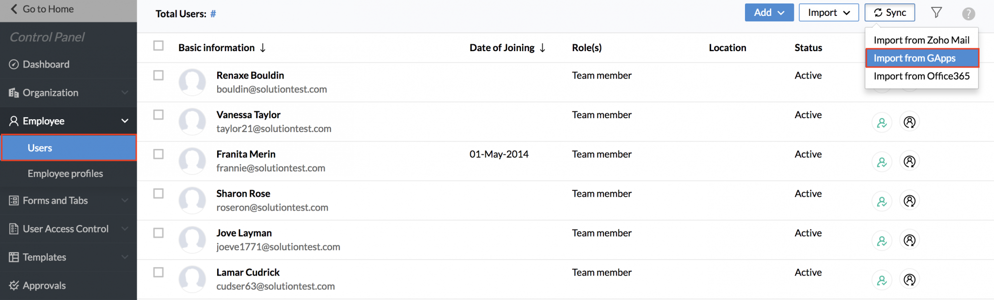 如果您拥有已验证的域,那么用户将会自动作为激活用户被添加到Zoho People。如果您没有已验证的域,则将会发送加入机构的电子邮件邀请给用户。