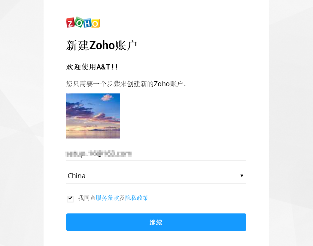 将会为您创建一个与您的Office 365账户邮箱地址相同的新的Zoho People账户。