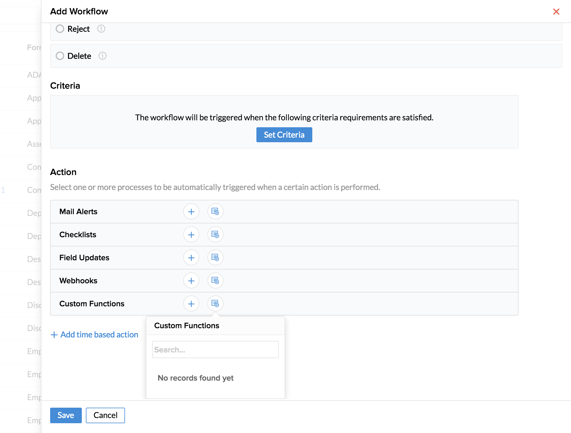 自定义函数让您能够创建用户定义的函数,然后可在 Zoho People 中的任何地方重复使用。您可维护和编辑自定义函数,脚本存放在一个中央位置。创建这些函数主要是为了便于处理数据,与第三方和内部应用程序连接以及更新 Zoho People 中的响应。