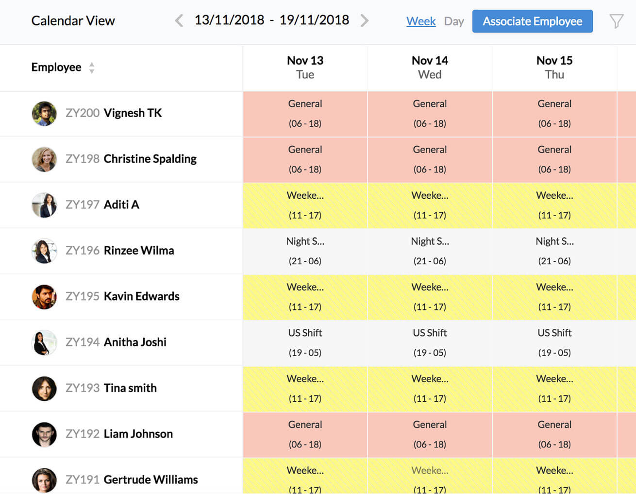 Zoho People 中的排班管理可以帮助人力资源员工轻松进行一周/一个月的安排并进行通知。工时表和时间日志可以准确追踪员工投入工作的时间并计算费用,确保员工在截止日期前完成工作。