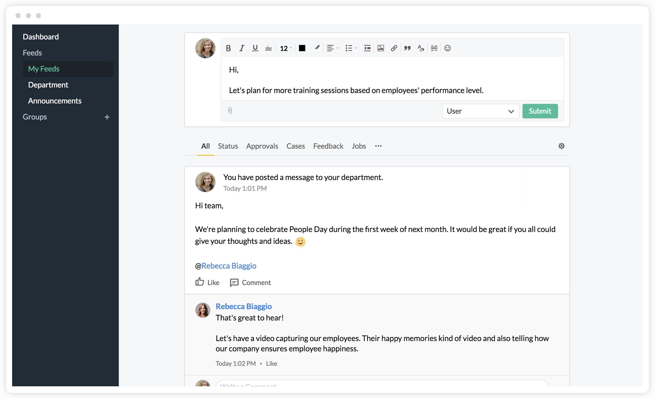 无论是分配新任务,发布公告,还是等待批准,活动都将在网络和移动设备的即时通知中广播。员工可随时了解情况。