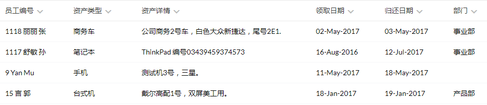 Zoho People可记录员工对公司资产(例如电脑、手机、车辆等)的使用情况。