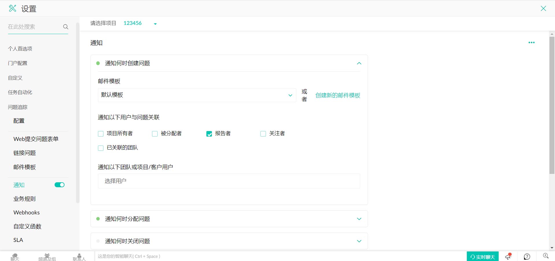 根据各种活动(如创建、分配或解决问题时),向用户发送电子邮件通知,根据团队需求为问题设置通知模式。