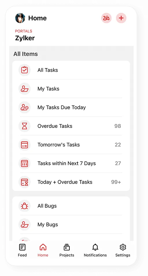 无论是需要快速更新的全局概述,还是特定于模块的报告,Zoho Projects 都能帮助您轻松完成众多项目及其更新。