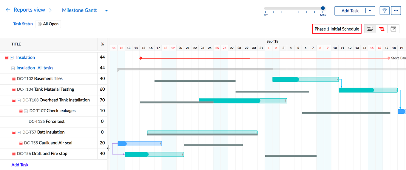 - 导航至项目,然后选择报表 > 里程碑甘特图。