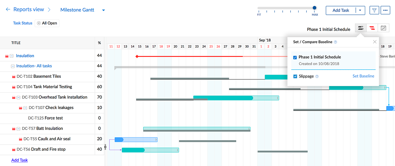 您可以在里程碑甘特图的帮助下设置基线。