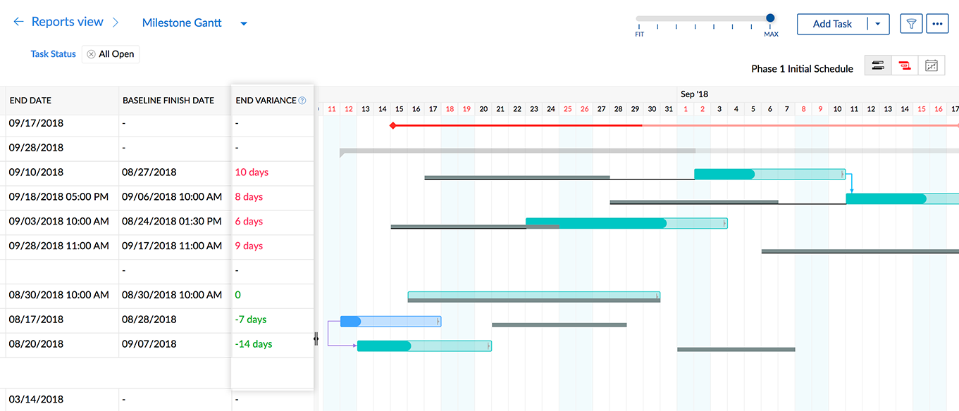 结束差异用于跟踪任务完成的延迟。它是基线结束日期和任务的当前结束日期之间的差异。基线结束日期是预计的任务初始完成日期。