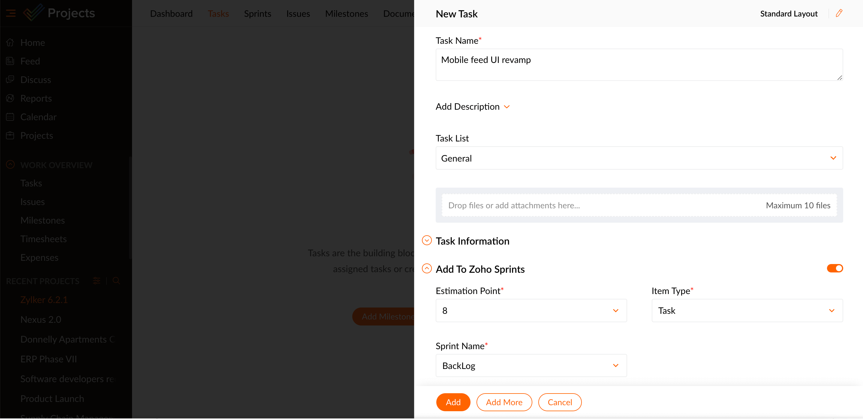 在混合方法中,团队不必改变工作方式。传统团队可以将任务添加到任务列表,设置依赖关系或关联蓝图。当任务进入到开发阶段时,团队可以将其作为用户故事添加到待办事项中,以便敏捷团队在冲刺阶段循序渐进地工作。