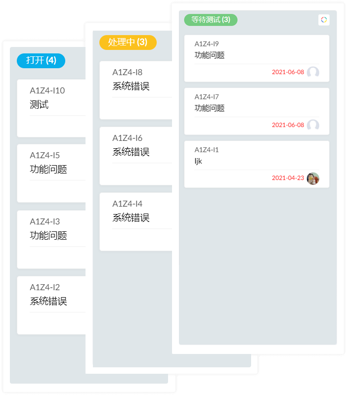 通过看板将问题可视化。例如问题的状态,优先级,附件或评论。只需拖拽不同的列就可以更新问题状态。
