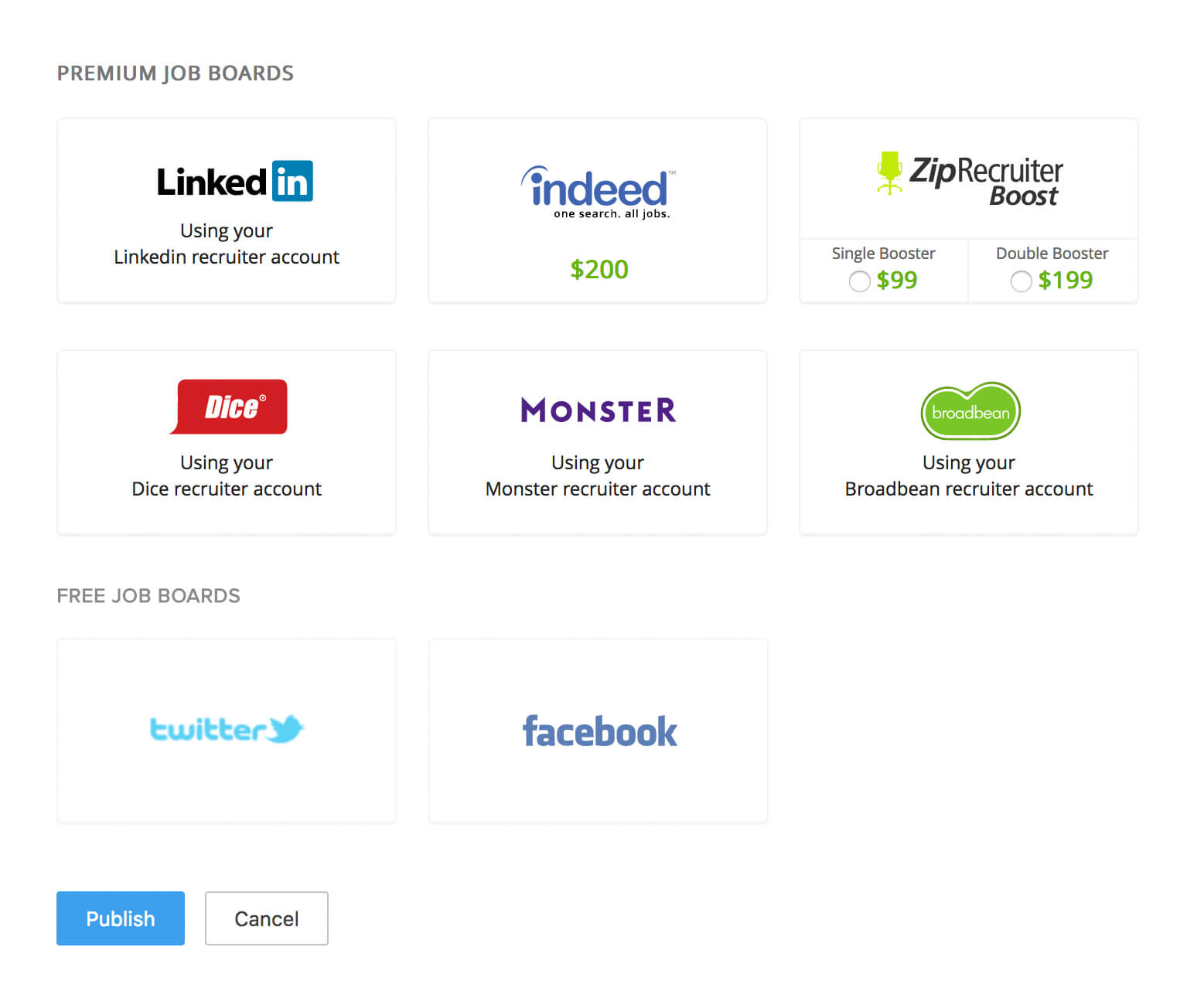- 使用 Social 在您公司的 Facebook 页面或 Twitter 帐户上发布职位空缺。