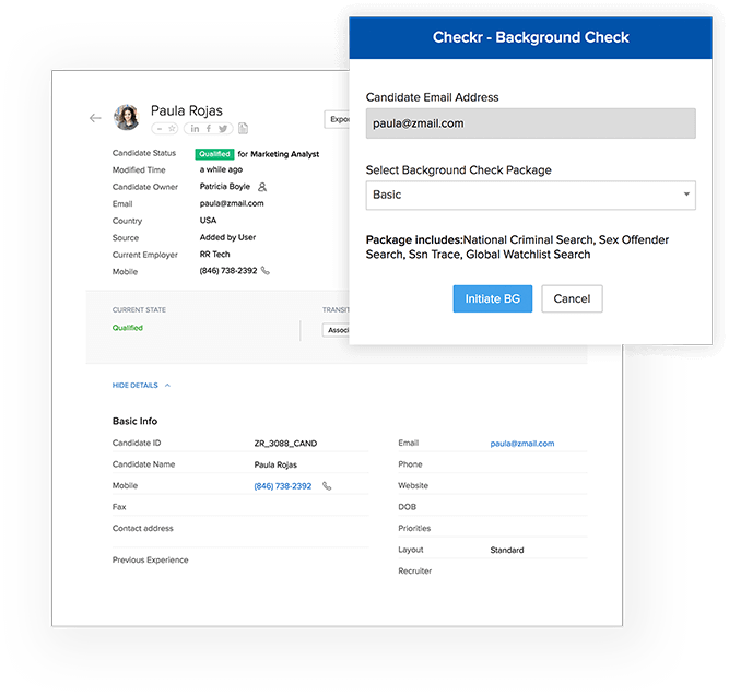 Run background checks 使用 Zoho Recruit 的背景筛选功能确保安全、合规和包容性的招聘工作。
