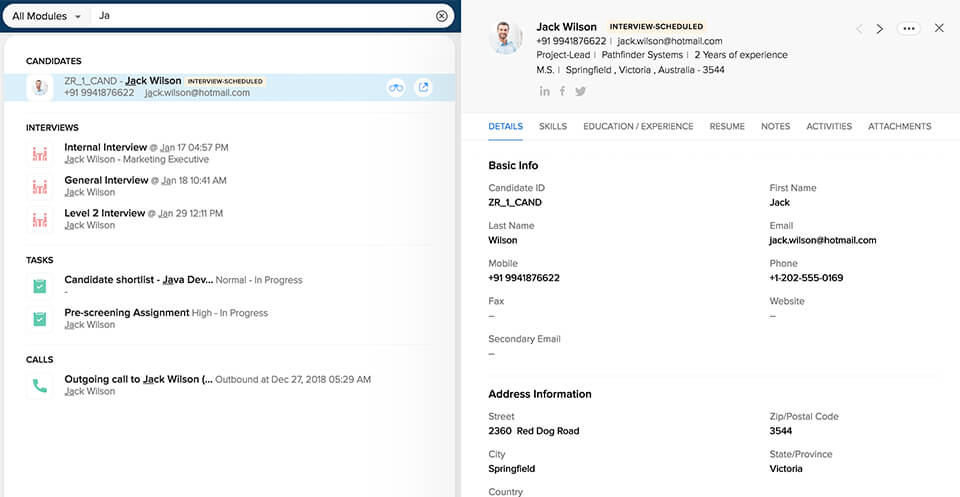 Say "hello" to Smart Search 使用Recruit的智能搜索功能可立即搜索和查找记录,该功能会在您键入内容时便开始搜索,甚至在您的搜索操作还没有完成,搜索结果就已经展示。