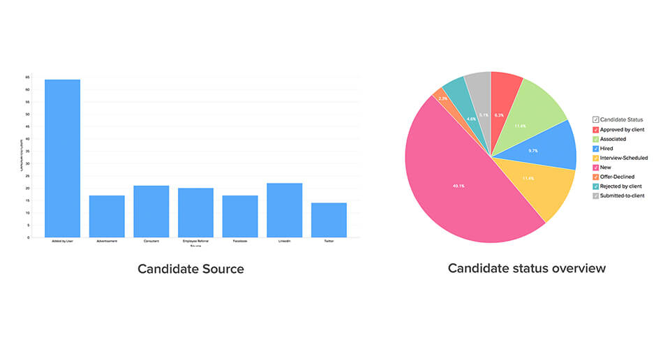 Analytics that lead to strategies 使用高级招聘分析生成报表,深入了解应聘者面试情况、职位空缺状态等。