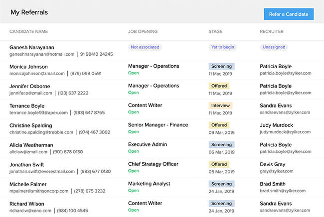 从供应商门户、自定义职业页面到员工推荐,Zoho Recruit 都能帮助现代企业招聘团队找到适合公司的候选人。