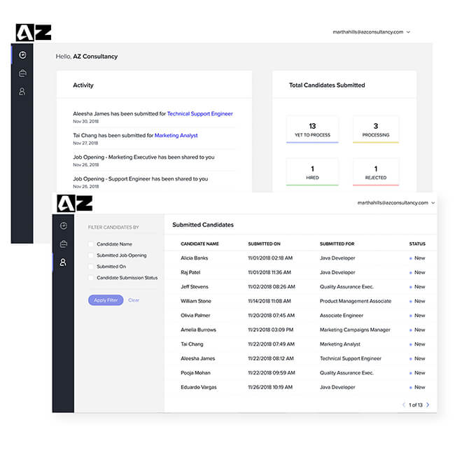 Candidate hiring pipeline 获得空缺职位的全景视图。从筛选到聘用,查看招聘流程中的求职者状态。