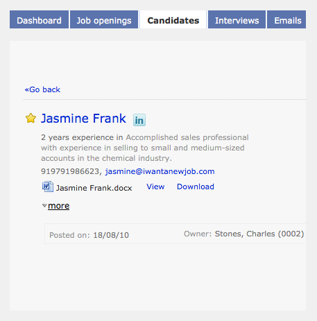 Zoho Recruit helps you to track all your email communication with candidates, clients and client contacts inside Zoho Recruit itself.