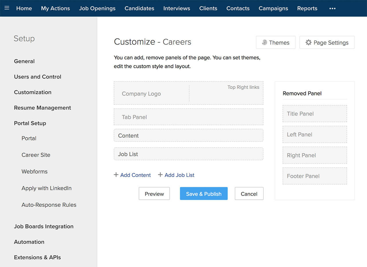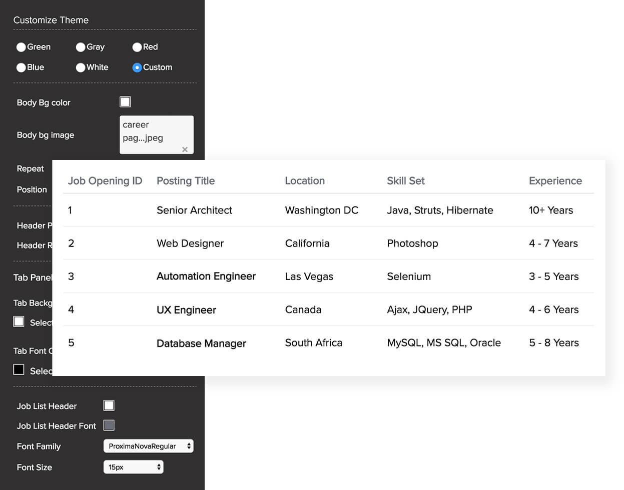 让您的机构与众不同。通过添加公司标识,选择您所需的职位模板以及设置自定义主题,自定义招聘页面的外观。