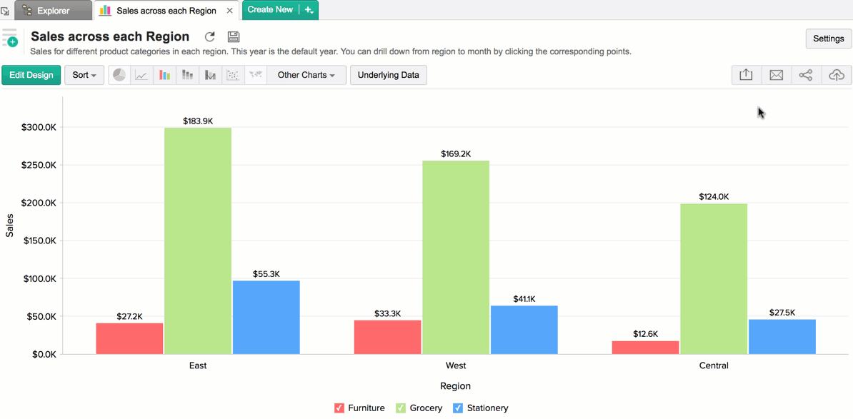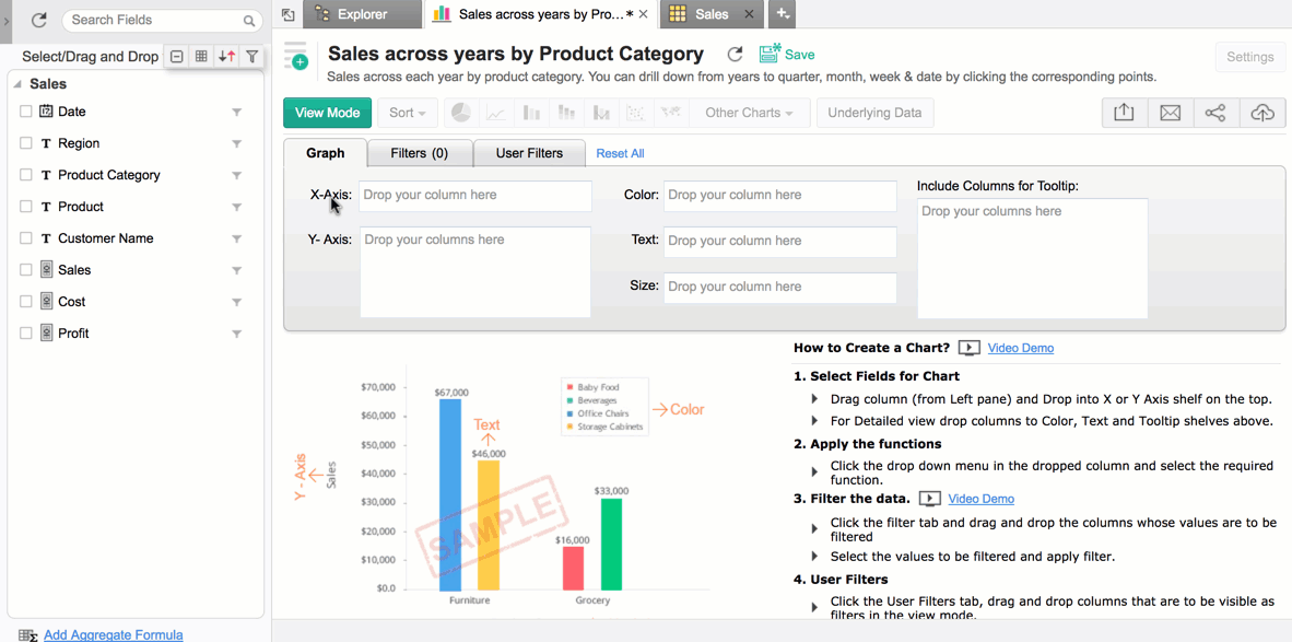 您可使用各种各样的图表、透视表、KPI 窗口小部件及表格视图组件来构建您的仪表板。深入探索数据,获得您所需的洞察。