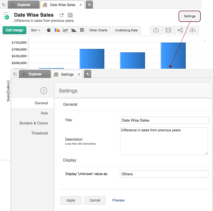 Zoho Analytics 允许您为工作区指定一组首选项,例如设置财年的起点、在报表中设置图表颜色或栅格主题以及管理用户、数据警报和幻灯片。