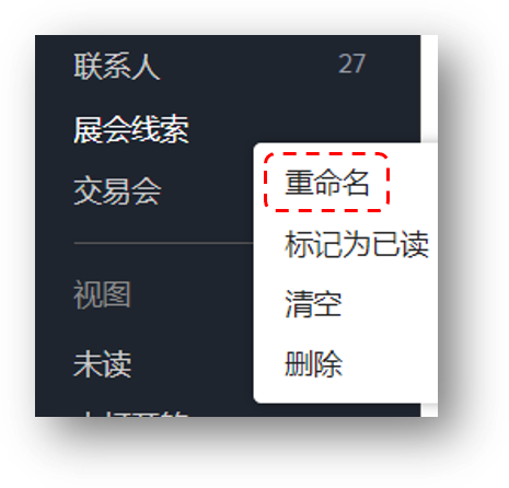 为了更好的帮助您使用文件夹,系统还提供了两个结合CRM上下文的默认文件夹。您还可以基于自己的需要来创建新的文件夹。
