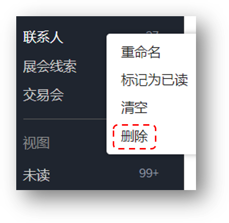 另外,您还可以在首页左侧主菜单中右键单击想要删除的文件夹,并选择删除菜单来删除文件夹。