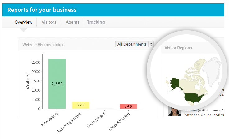 Zoho SalesIQ提供清晰直观的预置报表,可总结团队绩效、轻松对比并发现趋势、找到业绩突出的客服人员/部门,分析独立访客和其他关键指标,做出更明智的决策。