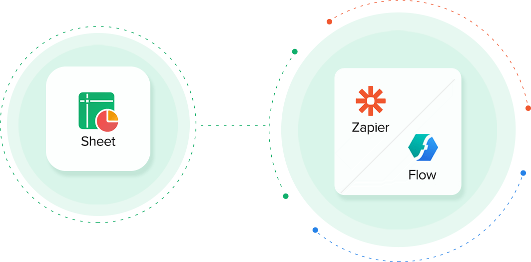 TypeformWith this release, Zoho Sheet proudly integrates with Zoho Flow and Zapier to provide automated workflows across hundreds and thousands of Zoho and third-party applications such as Zoho CRM, Zoho Projects, MailChimp, etc.