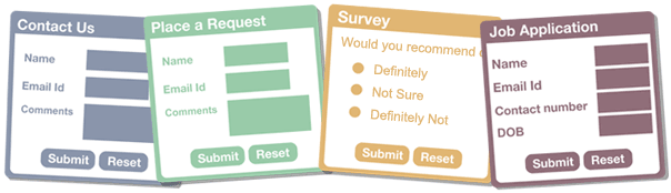 Collecting business-essential data from your visitors is easy using online forms. Zoho Sites has a gallery of contact form, surveys, event registration form and more. You can insert any of them into your website, customize them to suit your requirement, or even build your own online form for any unique need.