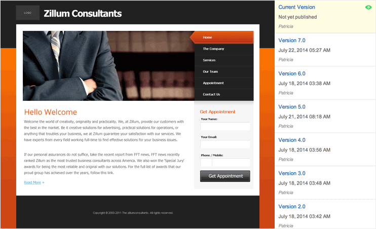 您可以随心所欲地对网页进行修改,而不用担心丢掉之前的记录。Zoho Sites将保存每次更新与发布的版本。