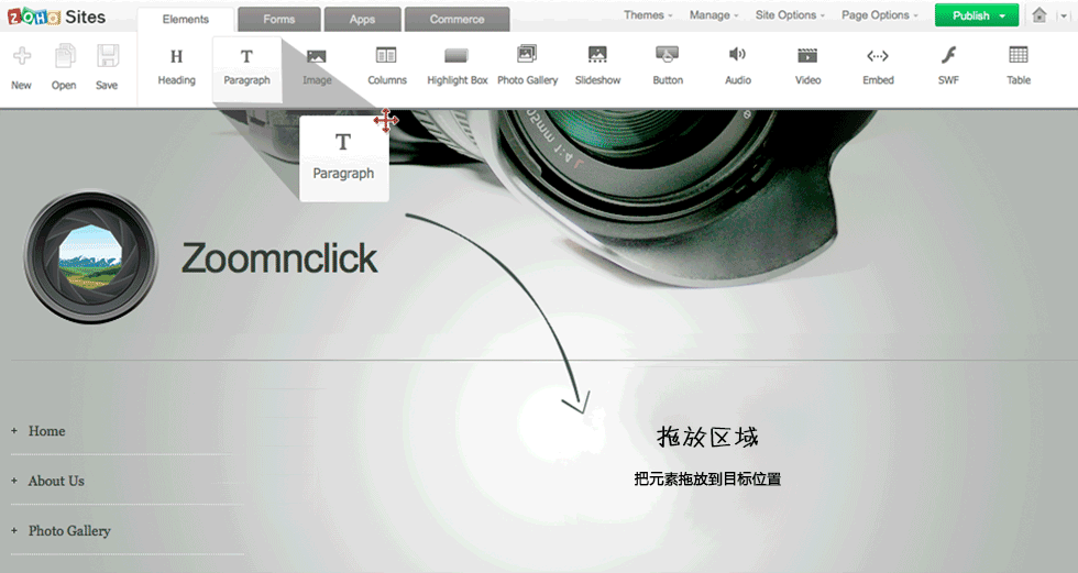 使用Zoho Sites,通过拖拽就能为您的网页嵌入一个web表单,以此收集访客数据,并与他们互动。