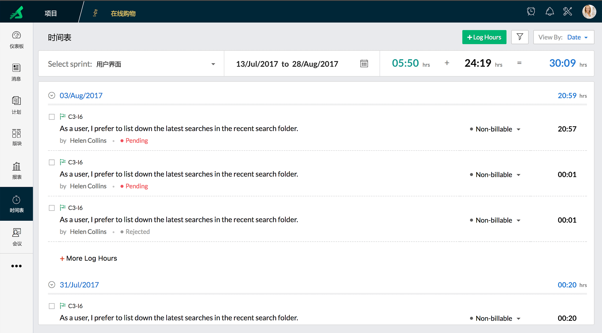 时间表可记录每项工作的可计费和不可计费的工时数。通过跟踪特定任务所费的工时,可准确估计下个迭代的完成时间。