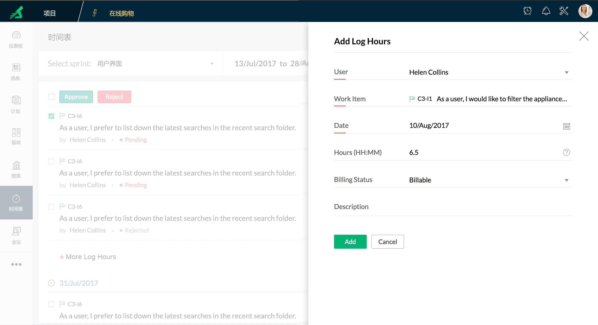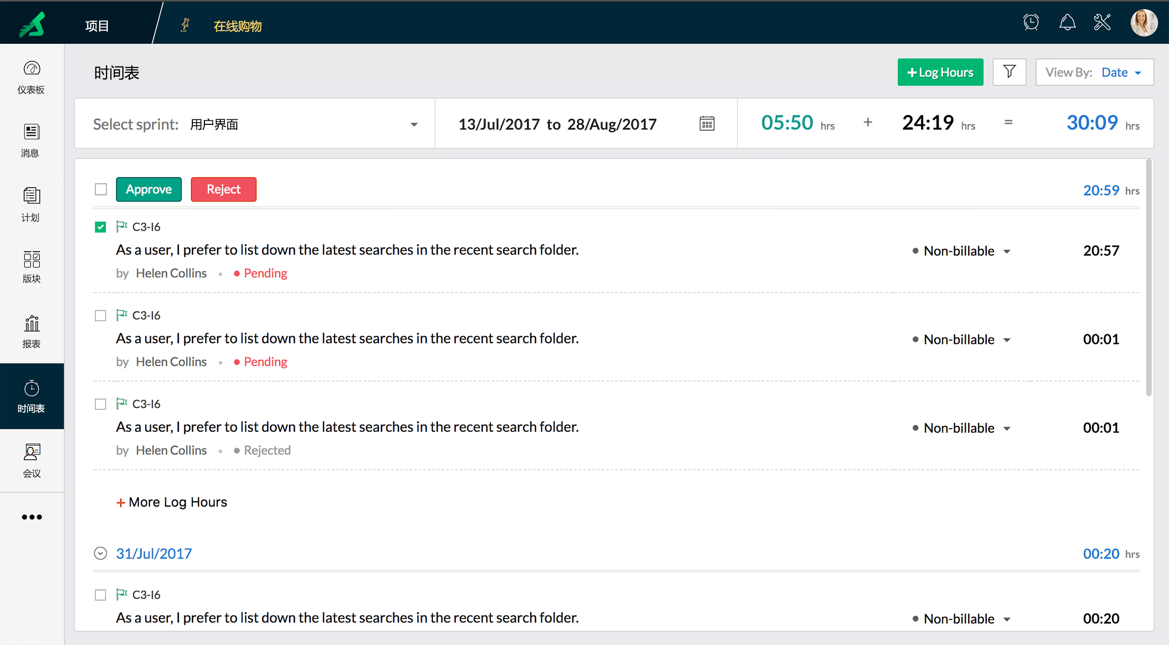 对于团队成员的任务工时统计,产品负责人可轻松一键批准或拒绝,审批过程简单、透明。