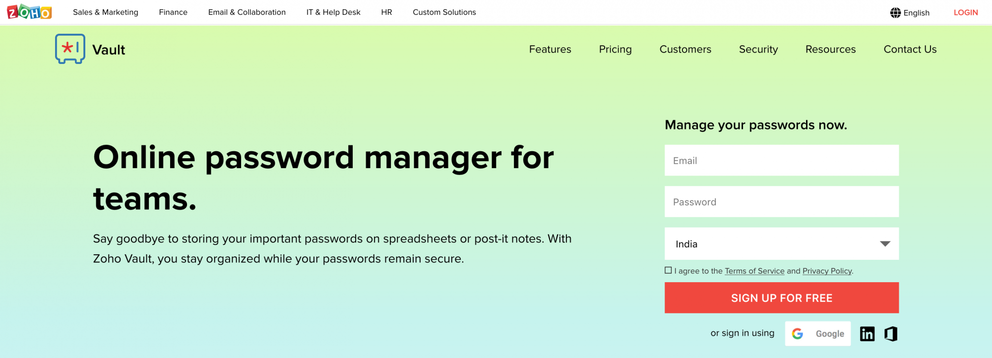 Zoho Vault 是一项供个人使用的免费服务,您不需要花钱就可以继续使用它。但如果您希望使用任何高级共享功能,您需要选择我们的订阅计划之一。请参阅我们的定价页面以了解更多信息。