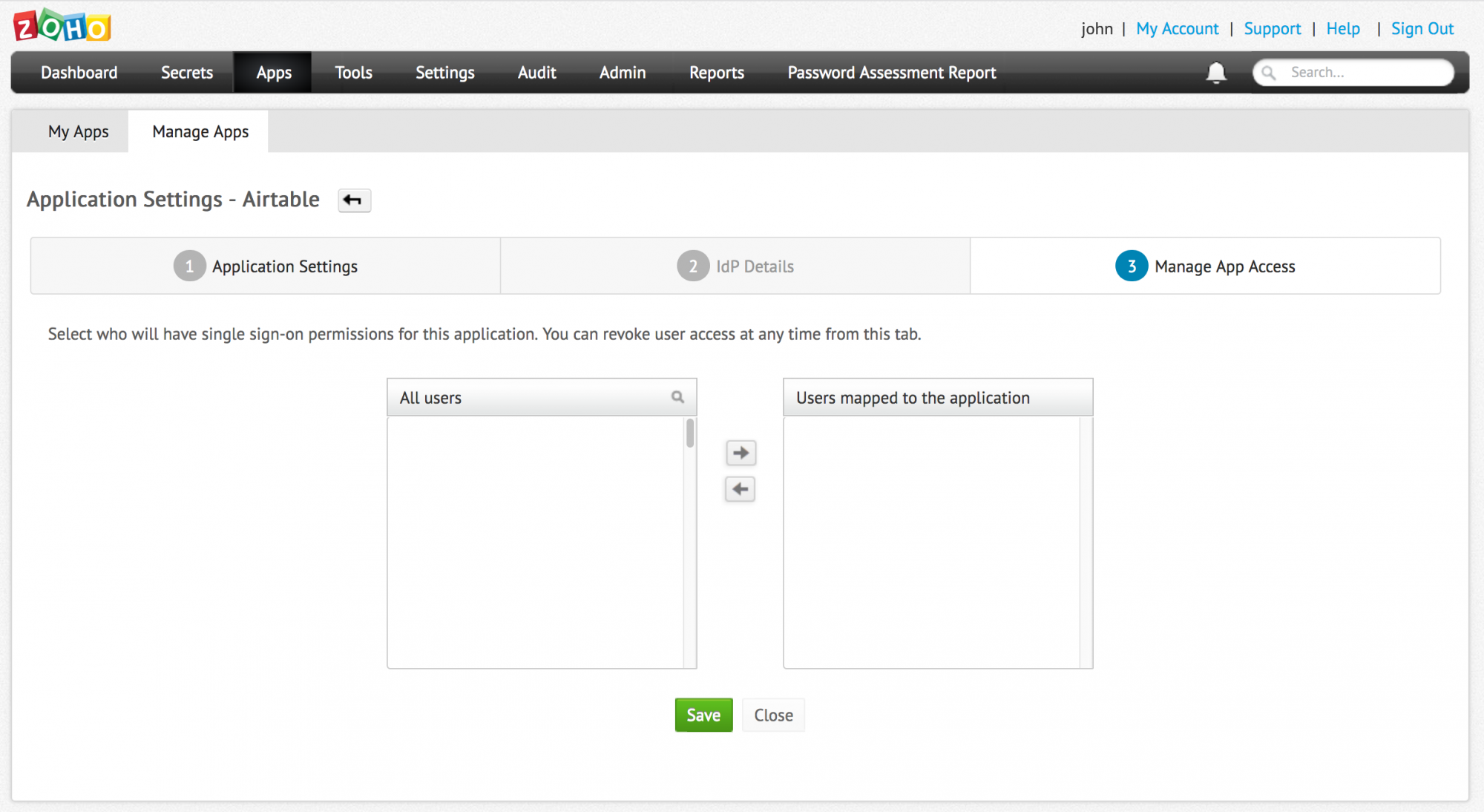 要允许用户使用单点登录访问应用程序,您首先需要在 Zoho Vault 中映射它们。这个过程在用户入职和离职时派得上用场。您可以按照以下说明来完成此操作: