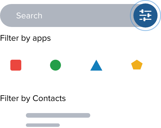 在所有 Workplace 应用中使用关键字搜索,结果按单个应用和联系人整齐列出。您还可以使用特定于应用的筛选器缩小搜索范围,并保存搜索结果以供将来参考。
