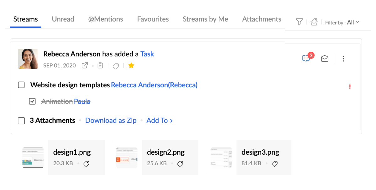 Streams消息流为您的团队提供了一个共享空间,以便更好地交流和讨论。 您可以发布有关团队里程碑的消息、发布任务或将任务分配给您的队友等。