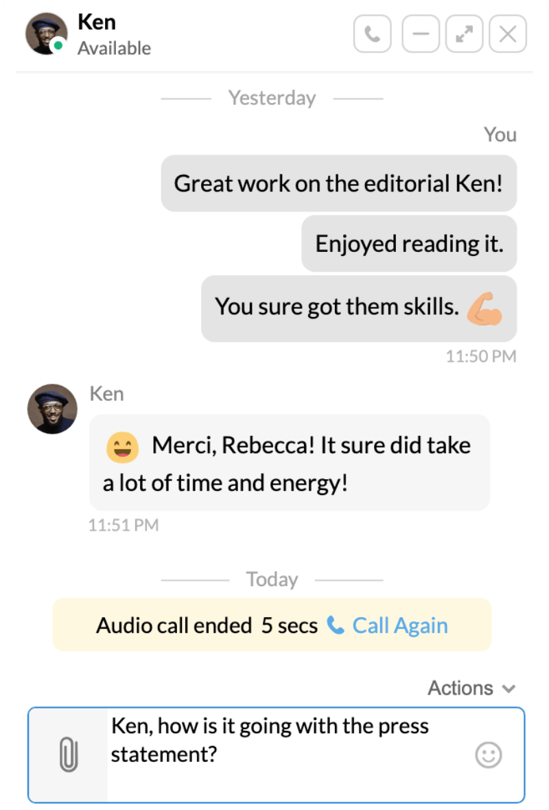 如果您的队友正在开会或者打电话,这时你去找他沟通是不是不太方便呢?