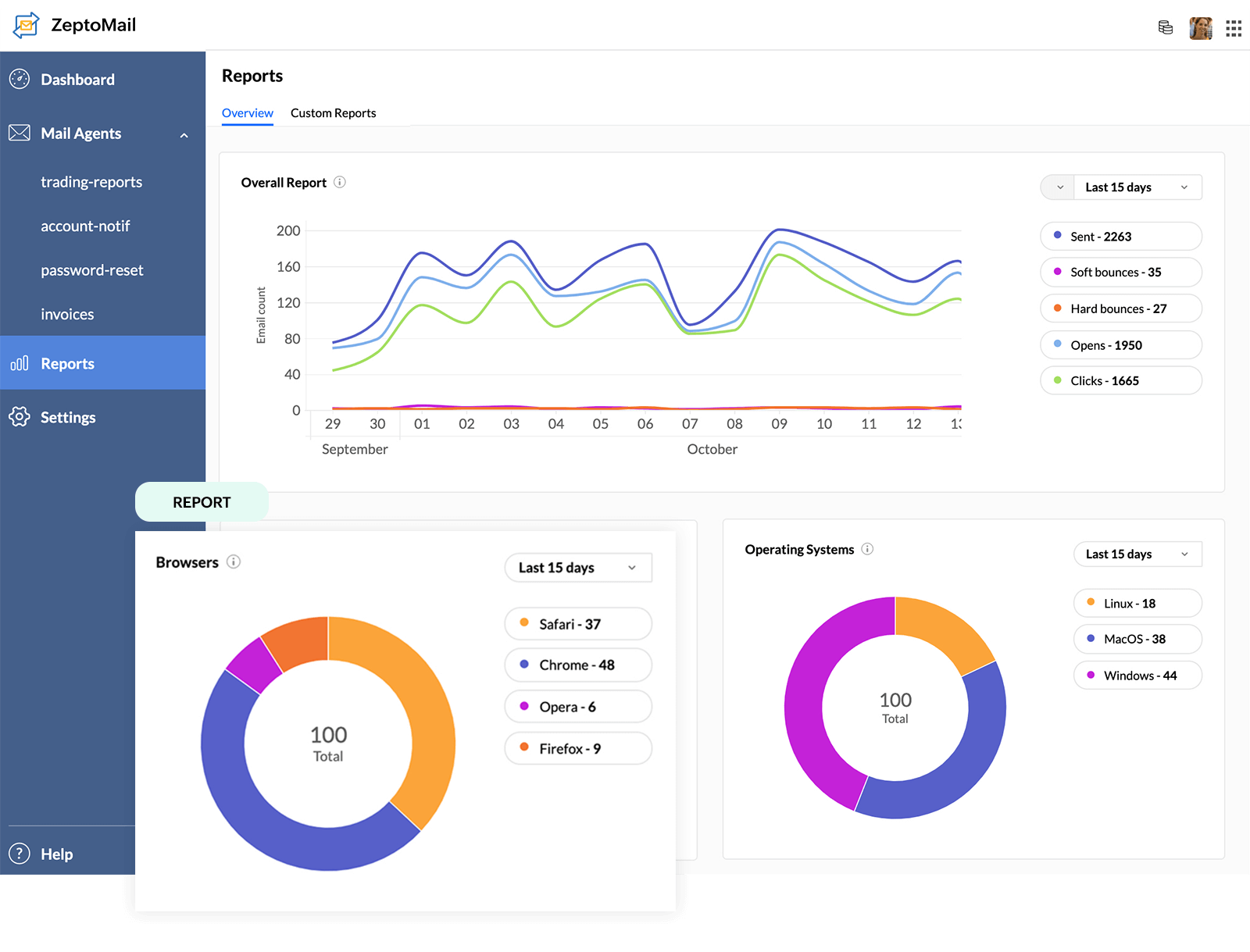 通过邮件跟踪,ZeptoMail 让您及时了解电子邮件的执行情况。 您可以使用 ZeptoMail API 监控邮件的退回率、打开率和点击率,还可以使用自定义域来跟踪收件人活动。